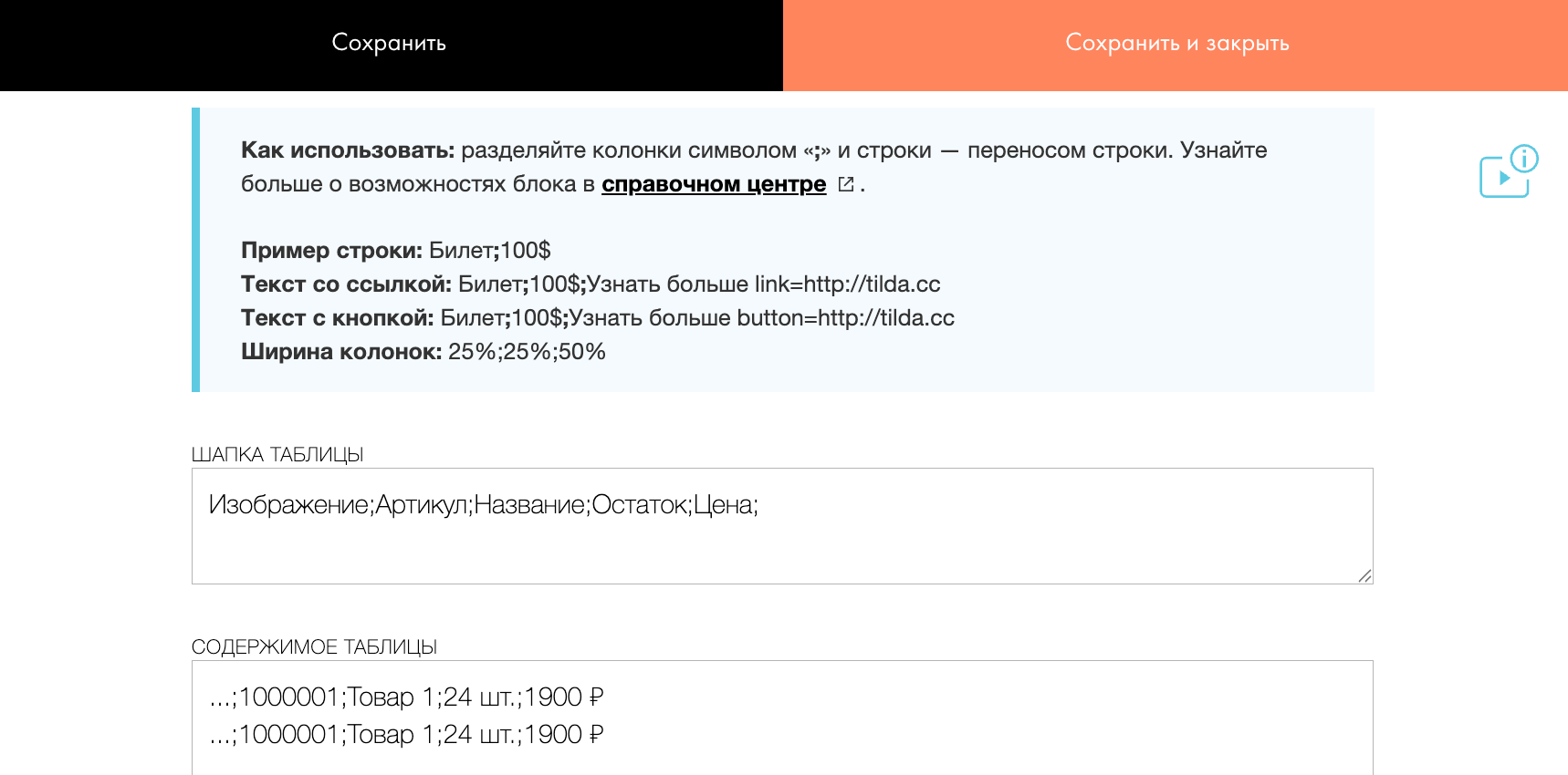 В моей практике был случай, когда заказчику нужно было обновлять доступность позиций и цен в прайс-листе чуть ли не каждый день. Отправлять менеджеров редактировать вручную значения в Тильде так часто — утомительно и рискованно: легко случайно сломать вёрстку или внести опечатку в цену.